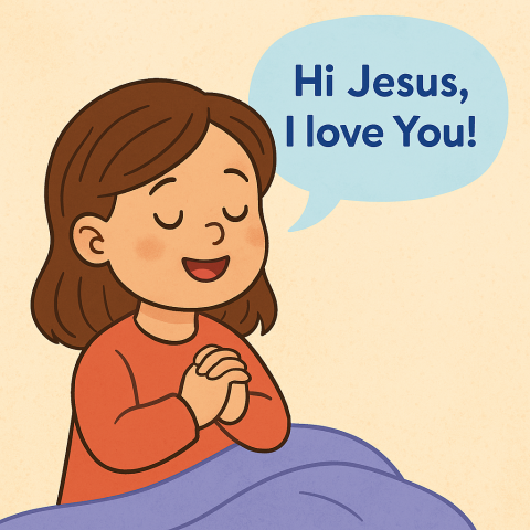 (Encourage kids to fold hands and say it with you: “Hi Jesus, I love You!”)